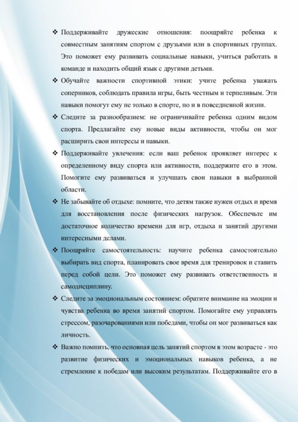 Консультация для родителей о спорте